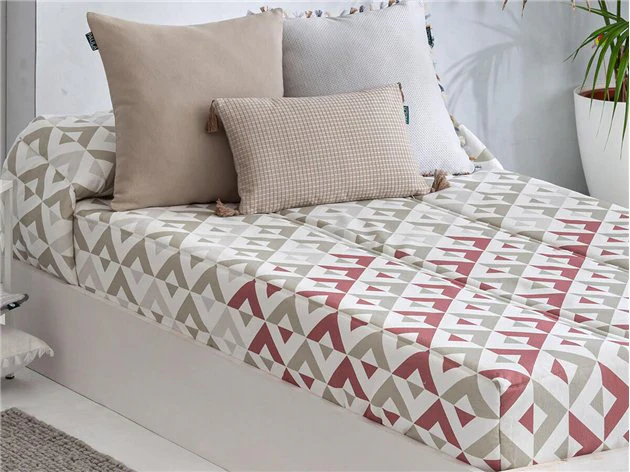 El edredón ajustable Murcia es una opción ideal para quienes buscan un ajuste perfecto en sus camas, sin renunciar al estilo y la elegancia. Diseñado con un patrón moderno y geométrico, está disponible en una variedad de colores suaves que aportan un toque de sofisticación a cualquier dormitorio. Su diseño ajustable asegura que el edredón se mantenga en su lugar, ideal para quienes desean un acabado más pulido y práctico.