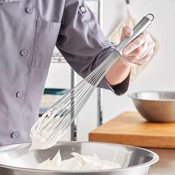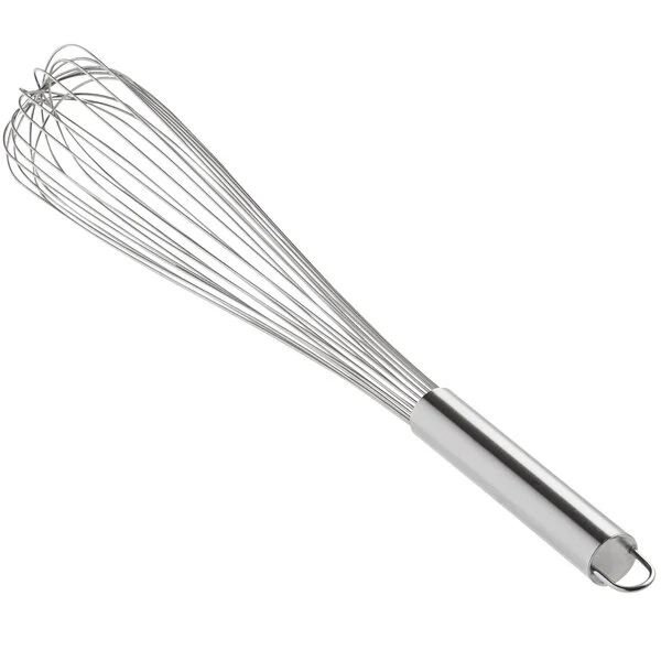 Este batidor de 18″ tiene un alambre de acero inoxidable de calibre más ligero para batir y airear salsas y aderezos delicados.