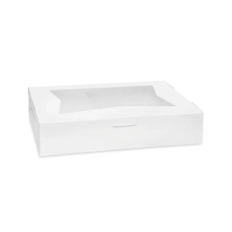 Caja con ventana circular transparente en el frente, para que sus clientes vean rápidamente sus galletas, caramelos, nueces y otras creaciones. ¡Con un elegante color blanco. Esta caja es la manera perfecta de aumentar las ventas impulsivas en su panadería o tienda de dulces! Viene plano con un diseño de 1 pieza que permite que se monte completamente en segundos.
