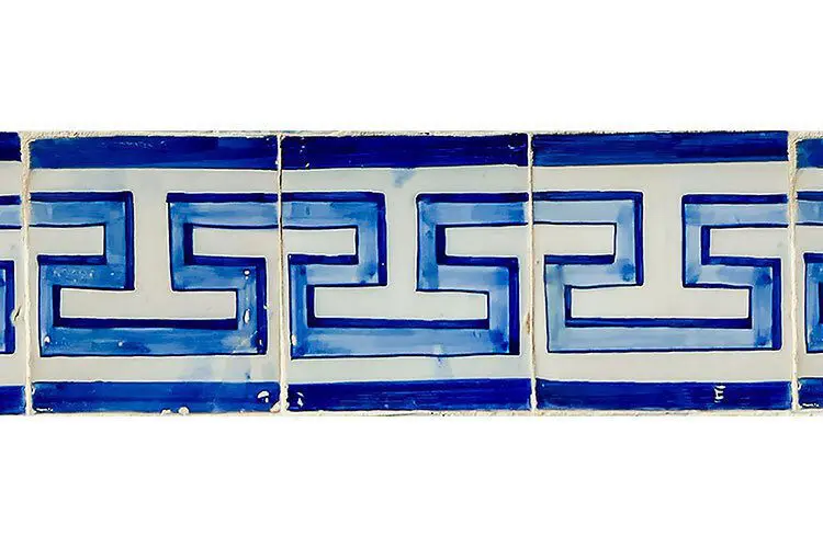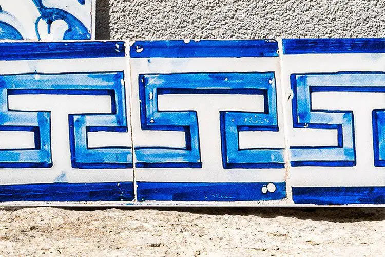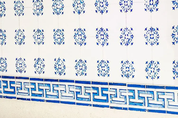 Cenefa bicolor con un motivo geométrico impresa simulando los azulejos de una fachada en las calles de Portugal. Dale un toque a tus paredes al más puro estilo Portugués.