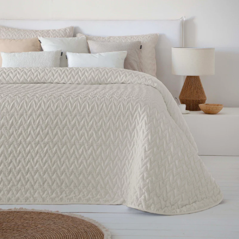 Colcha bouti beige cosida Lorea de FUN DECO