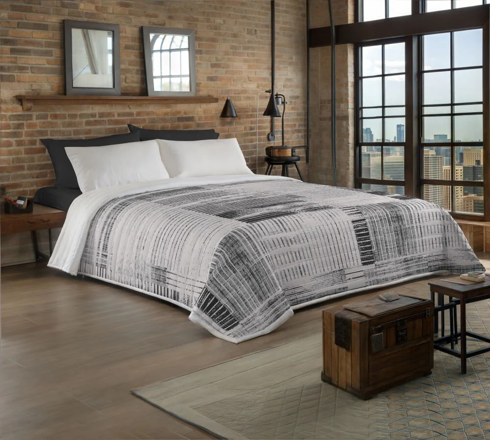 Transforma tu habitación con la elegancia y estilo de la colcha bouti QUINA de Naturals Euromoda. Su diseño en tonos grises y blancos, con un patrón irregular que recorre toda la superficie, aporta un aire contemporáneo y minimalista a tu dormitorio.