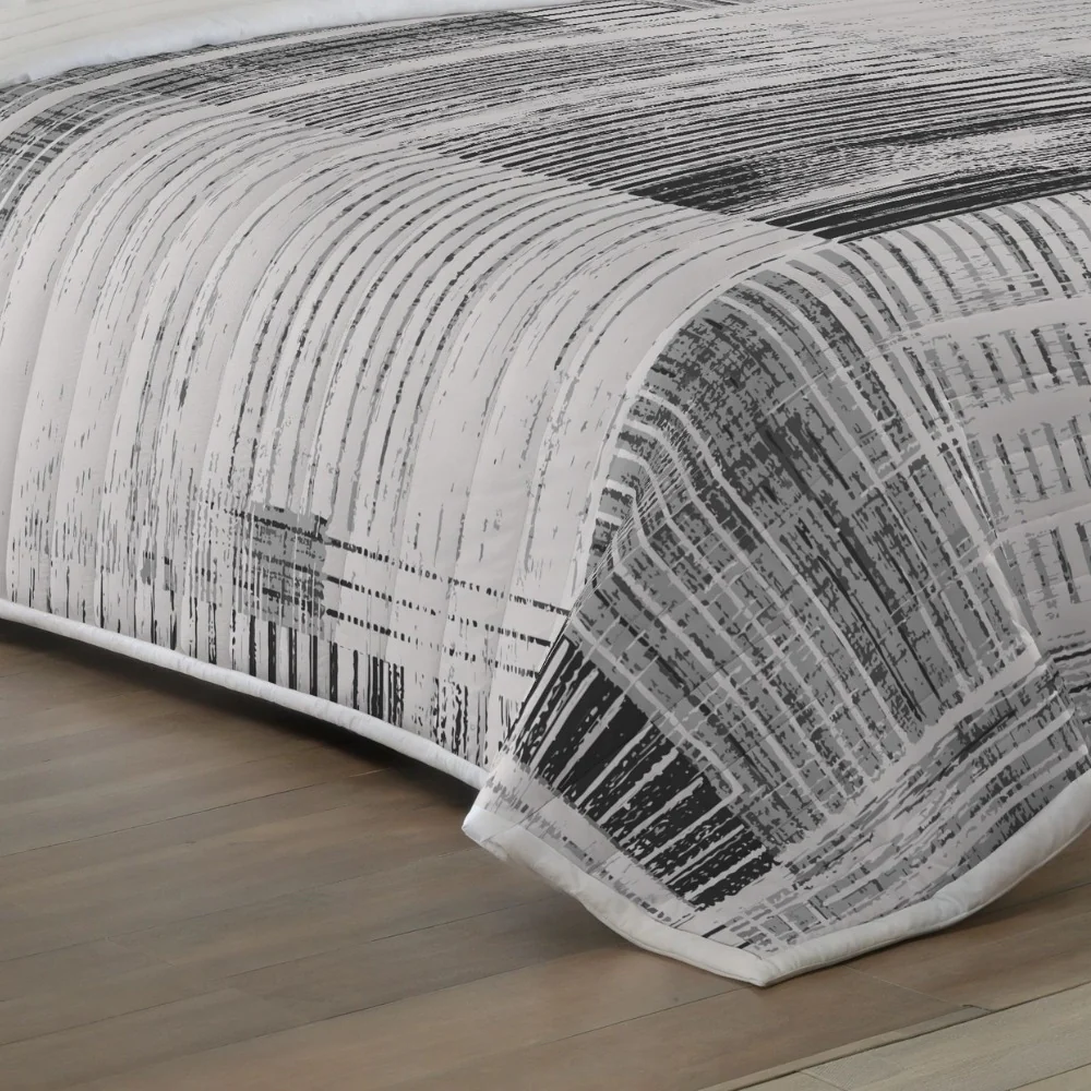 Confeccionada en microfibra esmerilada de alta calidad, esta colcha no solo deslumbra por su belleza, sino que también envuelve tu descanso en una suavidad incomparable. Su acolchado ligero la hace perfecta para las estaciones de entretiempo, brindándote la combinación ideal de abrigo y frescura.