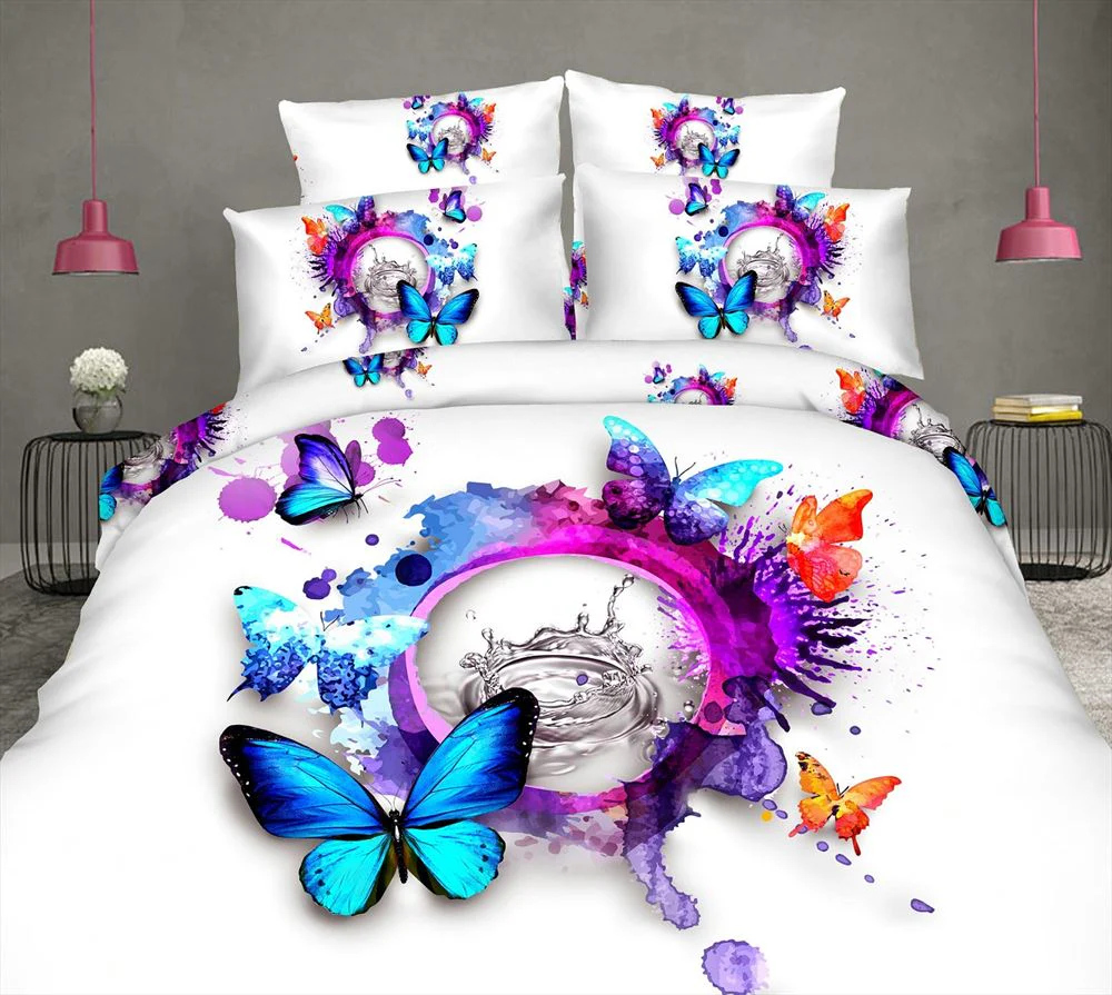 Juego de cama con estampado digital 3D arco iris de Mariposas ideal para habitaciones iluminadas ,4 piezas de material antiarrugas, agradable al tacto, no transfiere los colores en el lavado, lo cual hace que sea duradero y sus colores sigan vivos con el tiempo