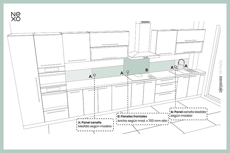 | Tamaños | 1 cenefa 1000 x 200 mm, Pack panel 600 x 700 mm + 2 cenefas, Pack panel 900 x 700 mm + 2 cenefas, Panel de cocina 600 x 700 mm, Panel de cocina 900 x 700 mm |