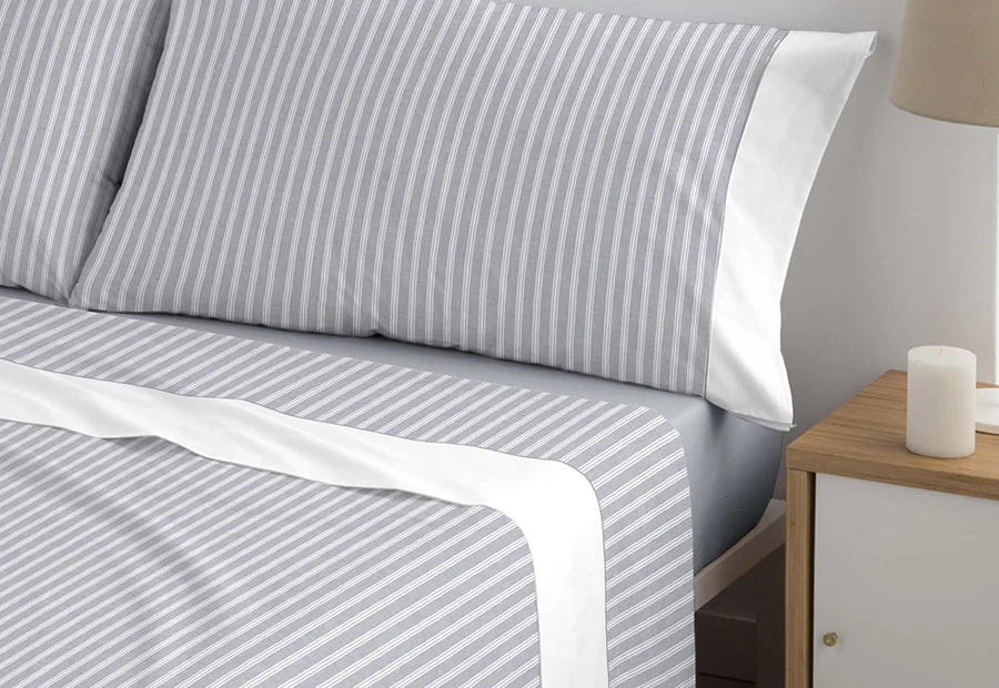 El estilo clásico nunca pasa de moda. El juego de sábanas Jazz de la marca POLO POLO, perteneciente a la prestigiosa colección Bambù, combina elegancia y simplicidad en un diseño atemporal de finas rayas grises sobre fondo blanco.