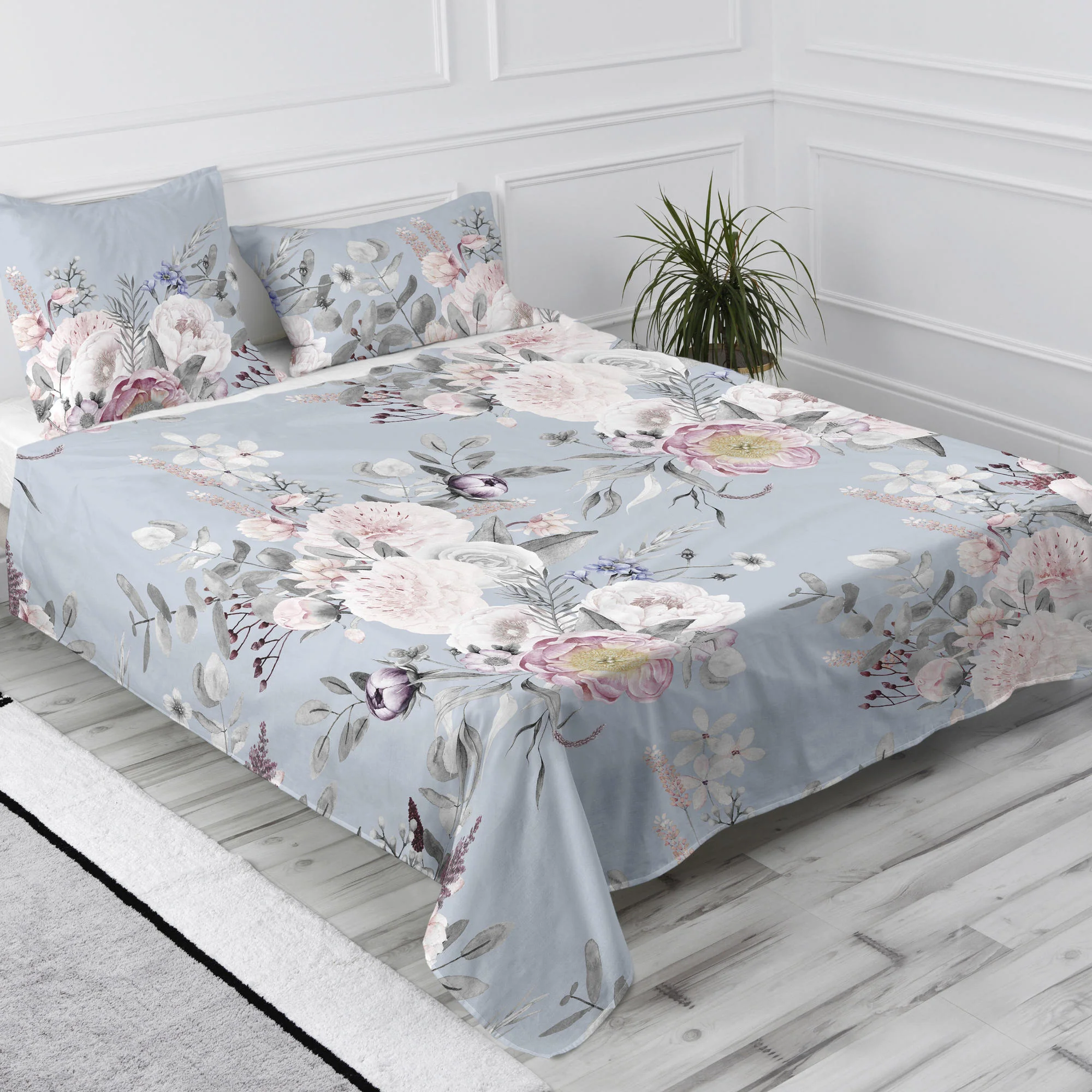 La sábana Soft Bouquet de Happyfriday aporta una elegancia fresca y acogedora a tu habitación con sus delicadas ilustraciones florales y suaves tonos fríos.